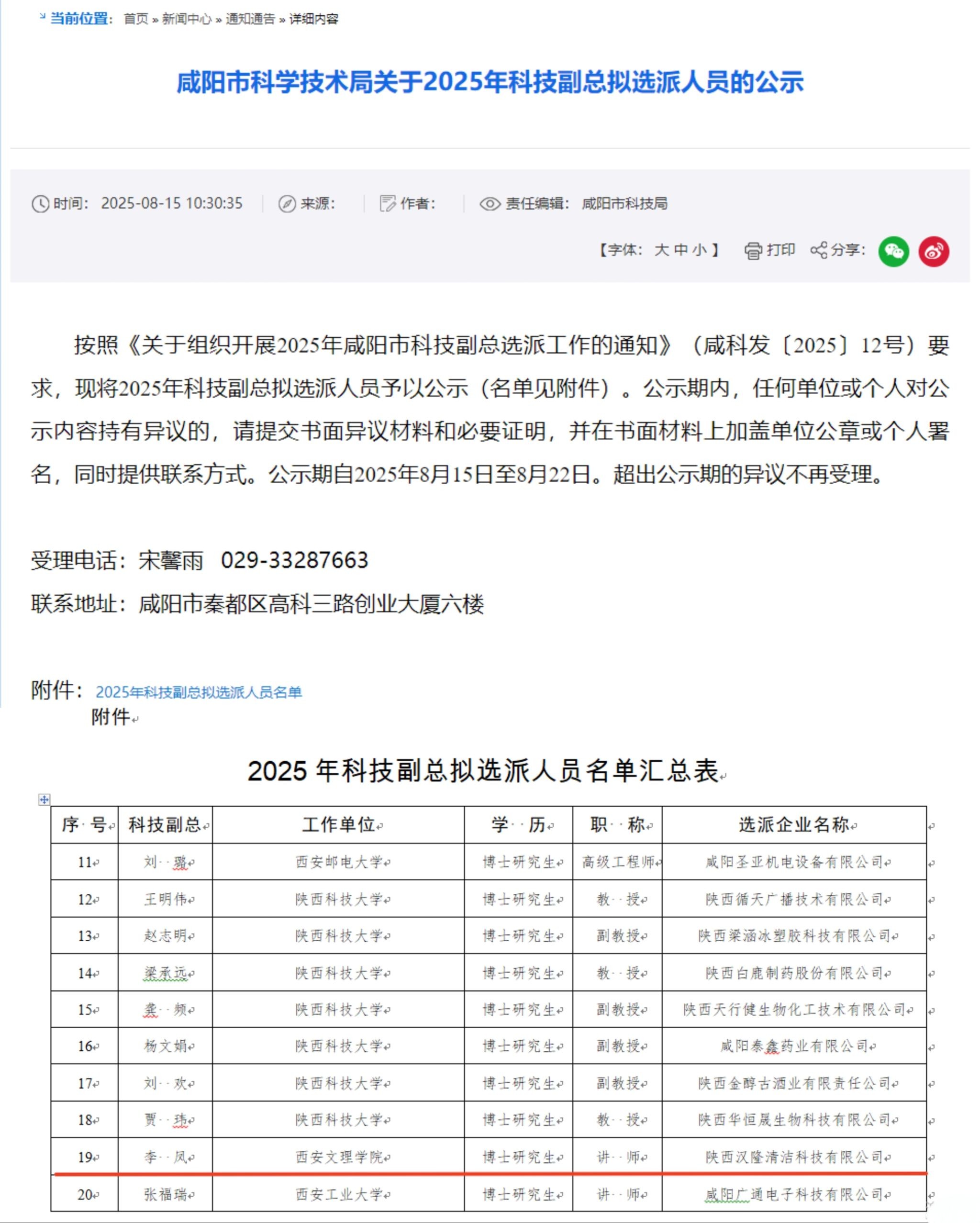科技副总是近年来陕西省为推动高校、科研院所科技人才服务企业创新发展,强化高校科技人才培养的重要举措。此次入选,是对双方科技研发实力与创新潜力的高度认可。未来,双方将借此契机,开展紧密合作,加速科技成果转化,为服务地方经济发展贡献力量。