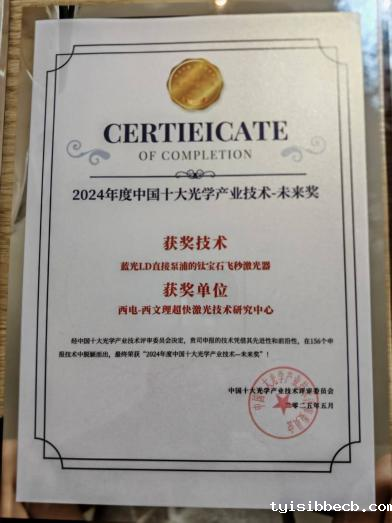 5月15日,“2024年度中国十大光学产业技术评选结果揭晓仪式”在武汉光谷会展中心隆重举行。本次活动由上海意桐光电科技有限公司、光电汇主办,中国激光杂志社、长三角G60科创走廊激光产业联盟等共同支持。我校光电工程系刘寒博士团队与西安电子科技大学朱江峰教授团队联合申报的“蓝光激光二极管直接泵浦的钛宝石飞秒激光器”技术成功获评2024年度中国十大光学产业技术——未来奖。