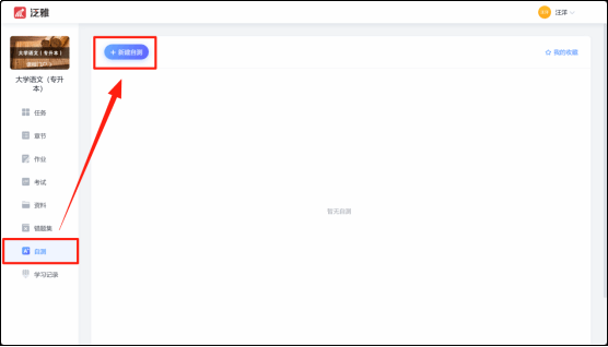 点击右上角新建自测 | 按需求设置好自测 | 选择自测开始作答 |