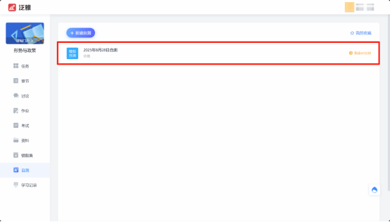 在课程中点击左侧【自测】模块,可以根据需要设置模拟试题刷题自测。点击【新建自测】